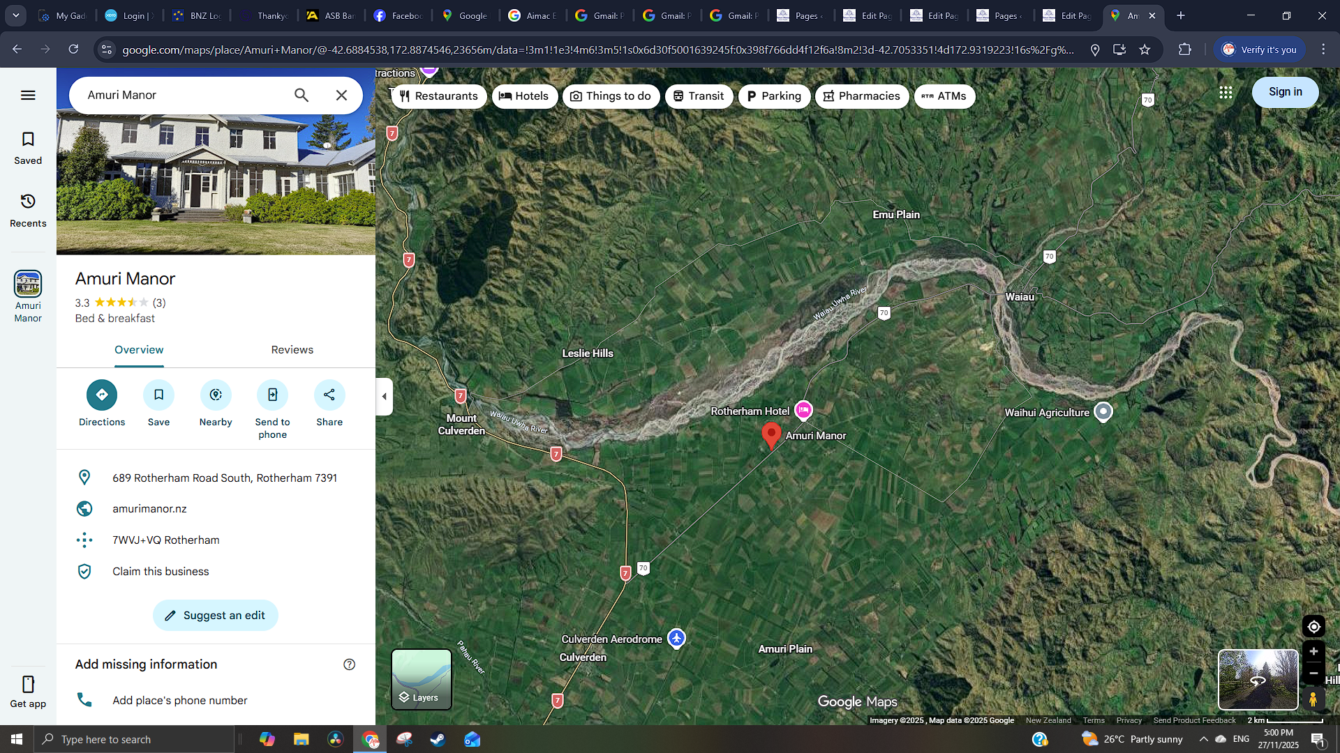 Amuri Manor is easy to find, located just before the village of Rotherham. On one side are fields. On the other side is Topps Construction. Opposite is Devines Automotive. Down in the village is the Rotherham Pub and General Store Established 1887. The village also has a primary school, a community medical centre and the Cooperating Parish of St Mary’s.