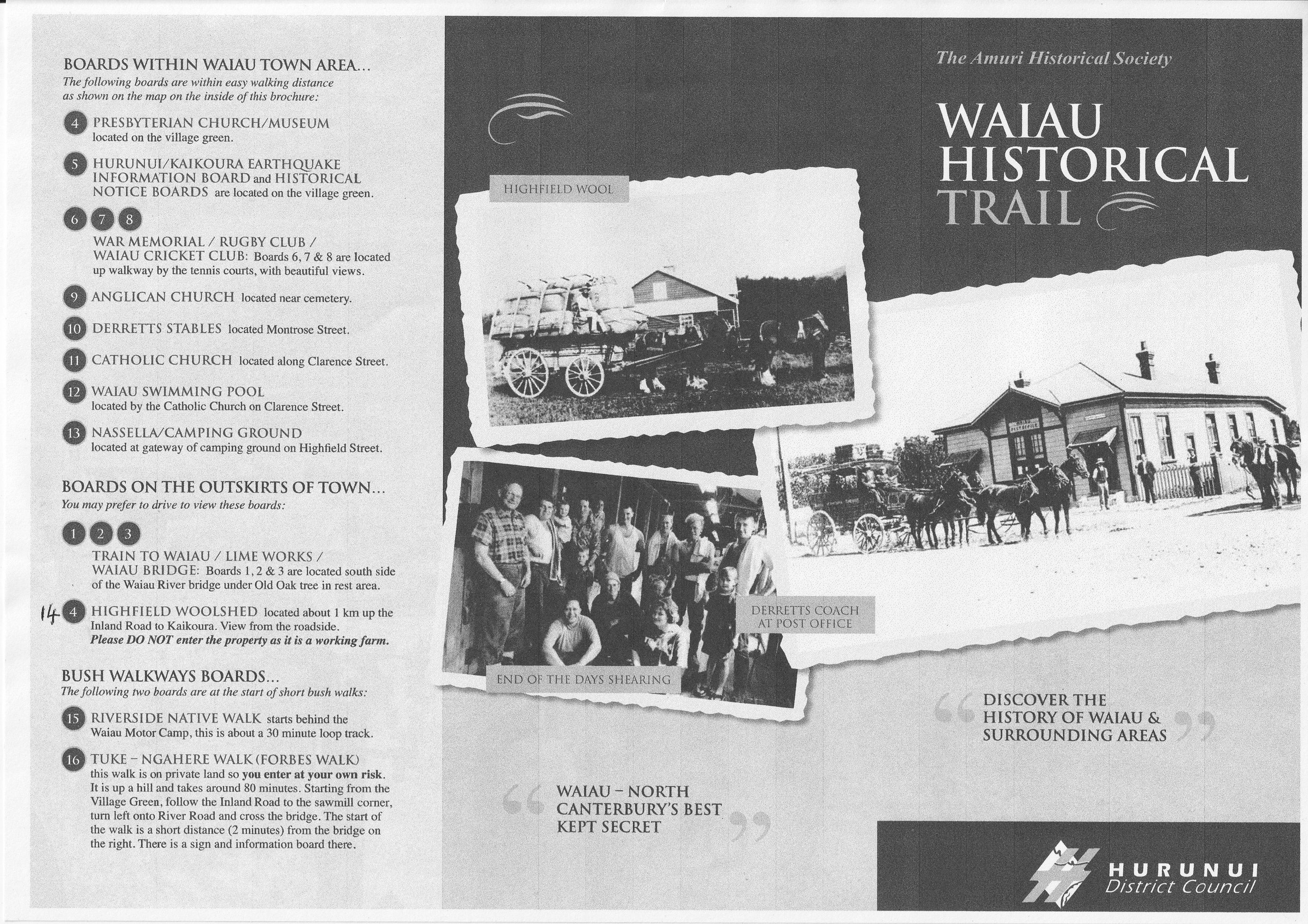 - After this, take the opportunity to follow parts of the Waiau Historical Trail, either on foot or by car or a combination. Use the two following information pages to follow this Trail.