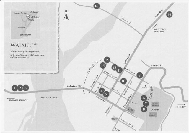 - From Cheviot Street beside the village green in Waiau, turn left onto Lyndon Street, then first left onto Leslie Street following signs for the Inland Road SH70 for Mt Lyford/Kaikoura.
